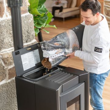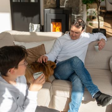Nous profitons surtout de notre poêle à granulés le soir après notre journée de travail ou les week-ends. Les dimanches d’hiver, nous aimons particulièrement nous retrouver dans le salon autour de la chaleur que nous procure le poêle. Pour nous la vie au coin du feu est synonyme de partage.