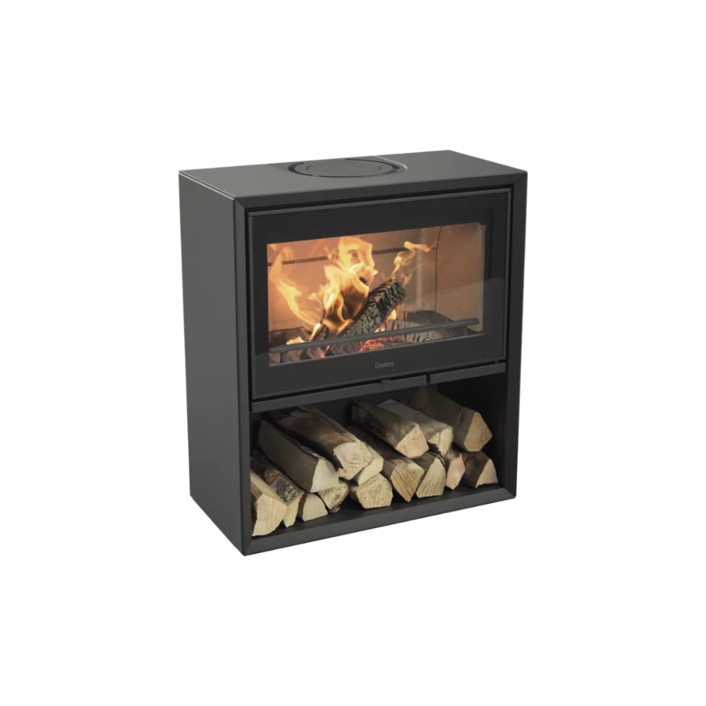 Découvrez le Contura 310G, une évolution élégante du Contura 310 dotée d’une porte vitrée transparente pour admirer le foyer ardant. Son design moderne est mis en valeur par une porte facile à manier grâce à sa poignée “main froide”. Choisissez entre un fini noir ou blanc et optez pour un compartiment à bois assorti pour une harmonie parfaite.