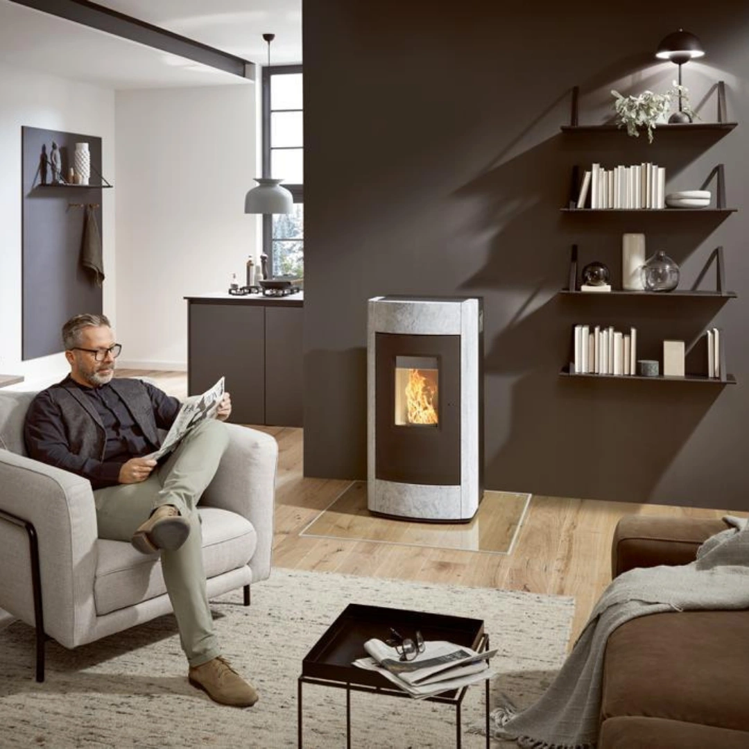 Découvrez le Revo II, un poêle à granulés qui allie chaleur confortable et esthétique épurée. Son design, caractérisé par des lignes simples et élégantes, est rehaussé par l’utilisation de pierre naturelle robuste et de haute qualité. Grâce à l’option RIKA FIRENET, contrôlez facilement votre Revo II via RIKA VOICE pour un confort sur mesure.